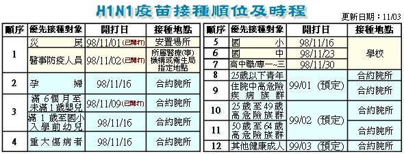 依照中央疫情指揮中心制訂的接種時程,一歲以上至學齡前的幼童、孕婦、重大傷病患者以及國小學童等四大族群,將從11月16日(週一)開打,符合接種人數近400萬人,其中國小學童162萬人最多。