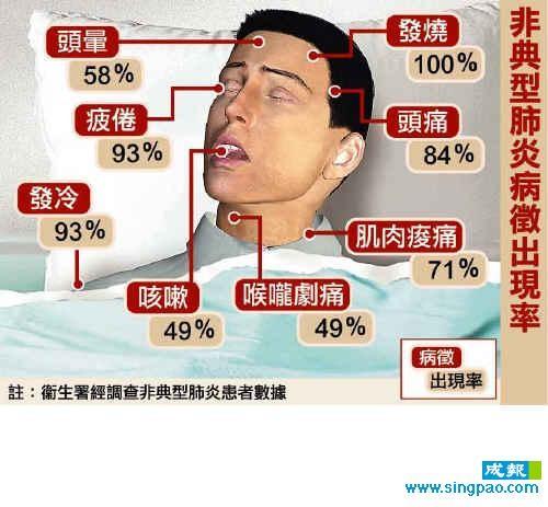 香港衛生署  嚴重呼吸道症候群(SARS)病徵出現率